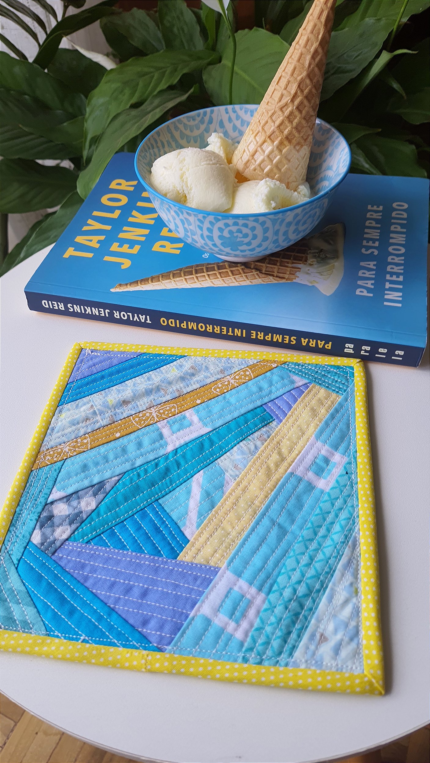 Nada como uma pausa tranquila com um bom livro e uma bebida quentinha — e esse conjunto foi feito exatamente para tornar esse momento ainda mais especial. Cada peça é costurada com cuidado em patchwork moderno, trazendo charme e aconchego para o seu dia.